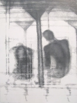 | Wie schon bei den Zeichnungen nach Motiven von William Henry Fox Talbot, hat sich Gerhard Faulhaber auch bei der jüngsten Werkgruppe von den Möglichkeiten bildgebender Verfahren anregen lassen. Waren es vorher die fotografischen Experimente des englischen Fotopioniers aus der Mitte des 19. Jahrhunderts, sind es jetzt aktuellste Methoden zur Erkennung unterschiedlicher Materialdichte. Sogenannte Backscatter-Aufnahmen erlauben es, Personen, die sich in Hohlräumen zwischen den Ladungen von LKWs verstecken, sichtbar zu machen. Auf diese Weise werden illegale Einwanderer aufgespürt. |
